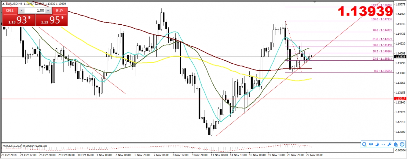 昨天晚間美國數據走差,促進美元小幅下行,但是意大利債務問題沒有解決,加上英鎊的脫歐新聞並無利好消息傳出,促進歐美走勢漲幅有限,今天的關註焦點在晚間的歐央行貨幣政策會議紀要上,上次歐央行利率決議,央行態度偏向中性,只是重申12月結束購債,關註本次貨幣政策會議紀要的講話態度以及態度,偏向鷹派有機會利好歐元,偏向鴿派有機會利空歐元,今天還是美國節假日,有機會晚間走勢波動小,關註具體行情走勢。從技術走勢上來看,歐美走勢震蕩偏多,下方支撐在1.138附近位置,進壹步支撐在1.135附近位置,上方阻力關註1.140附近位置,進壹步阻力在1.141-1.142附近位置,關鍵阻力在1.147附近位置,