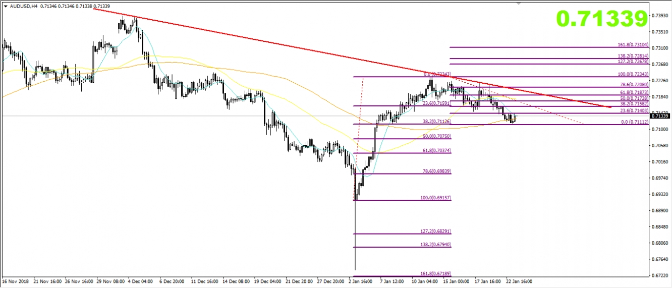 昨日澳美收跌,或受风险市场走弱的影响(油价和股市均有所走弱),这或于IMF下调2019年全球经济增速预期有关,此外贸易风险问题也再次引发大家担忧,今日澳美方面并无特别消息值得留意,可以重点关注下明早的澳洲就业数据,预期或有机会打压澳元,此外还可以可以关注下达沃斯经济论坛的召开情况,若是有进一步担忧未来的风险,或会打压到澳元,反之,有机会利好澳元。后续还可进一步留意中美经贸磋商、英国退欧等风险事件对澳美的影响。目前从技术走势上观察,澳美短线处于震荡偏下行趋势,上方阻力0.7160,0.7208,0.7234,下方支撑0.7111,0.7074,0.7036。价格若是遇阻0.7160的阻力,有机会下测0.7111,0.7074的位置,价格若是突破0.7160的阻力,有机会测试0.7208,0.7234的位置。